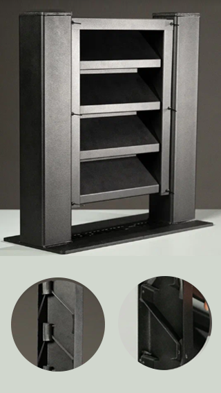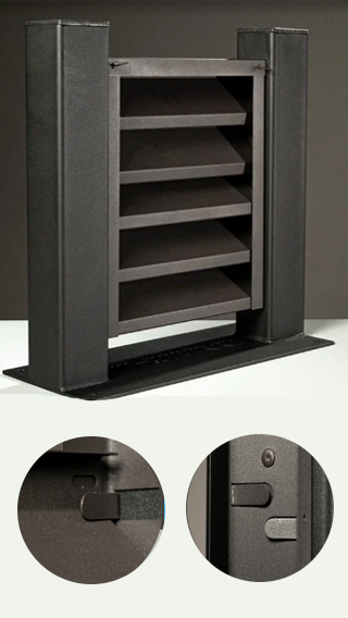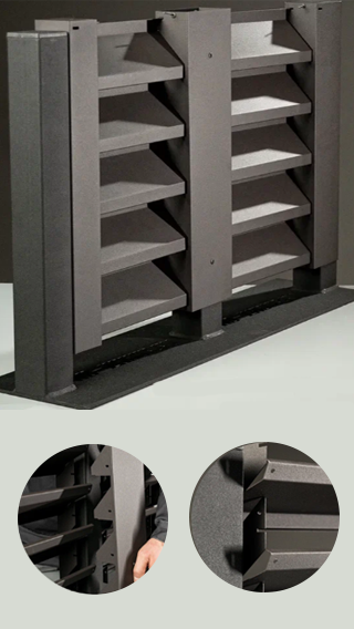 Быстрый монтаж конструкции достигается за счет простой сборки секций. Достаточно с обеих сторон вставить ламель в прорези направляющих и готовые секции закрепить к закладным.