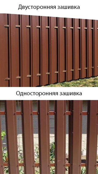 Чтобы конструкция была устойчива к ветровым и механическим нагрузкам планки имеют ребра жесткости. В зависимости от формы планки дизайн штакетника может быть выполнен в двух вариантах: