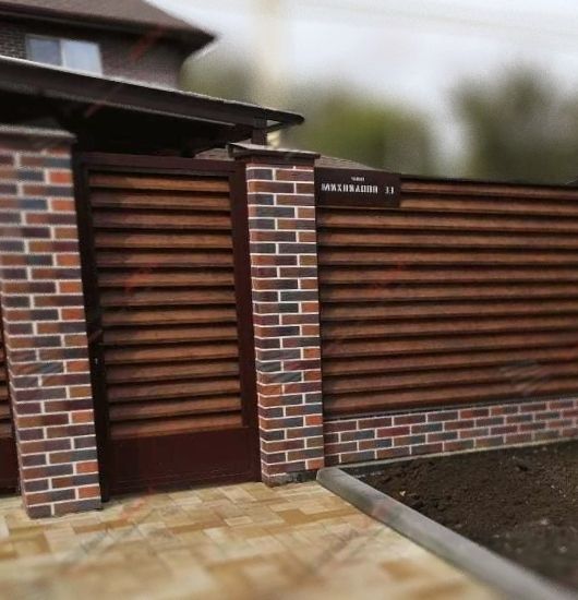 С фиксаторами. Ламели зажимаются в направляющих при помощью фиксаторов, а с изнаночной стороны крепятся заклепками. С лицевой стороны заклепок нет. Такой «слепой вид» забора выглядит презентабельно и аккуратно. Конструкция относится к быстровозводимому типу.